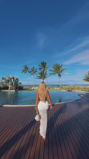 Macramê 100% EXCLUSIVO com caimento sereia, recortes sutis que dão um olhar a mais pra peça. Detalhes de búzios BORDADOS A MÃO que enriquecem e agregam ainda mais valor na peça.